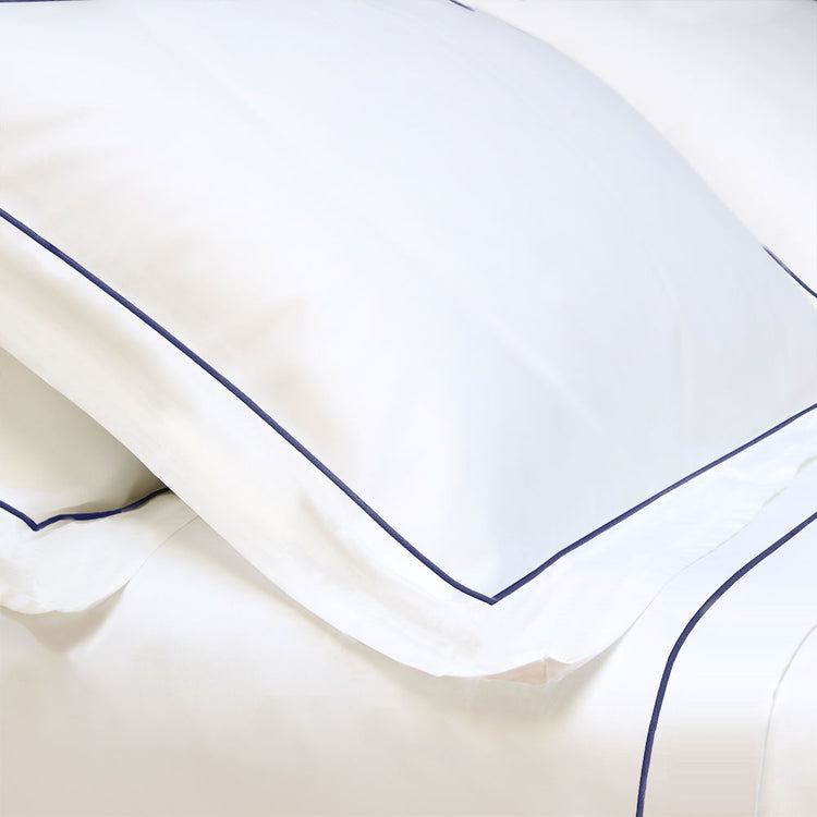 Dunluce Pillowcases with Navy Cord
